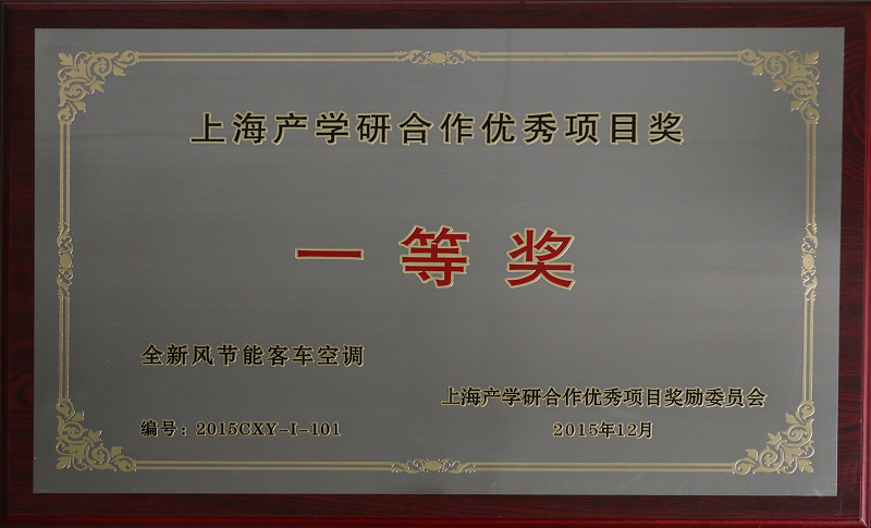 自主研发的“全新风节能客车空调”项目荣获“上海产学研合作优秀项目一等奖”
