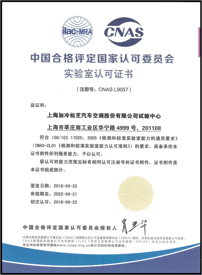 试验中心荣获“中国合格评定国家认可委员会实验室认可证书”(CNAS认证);